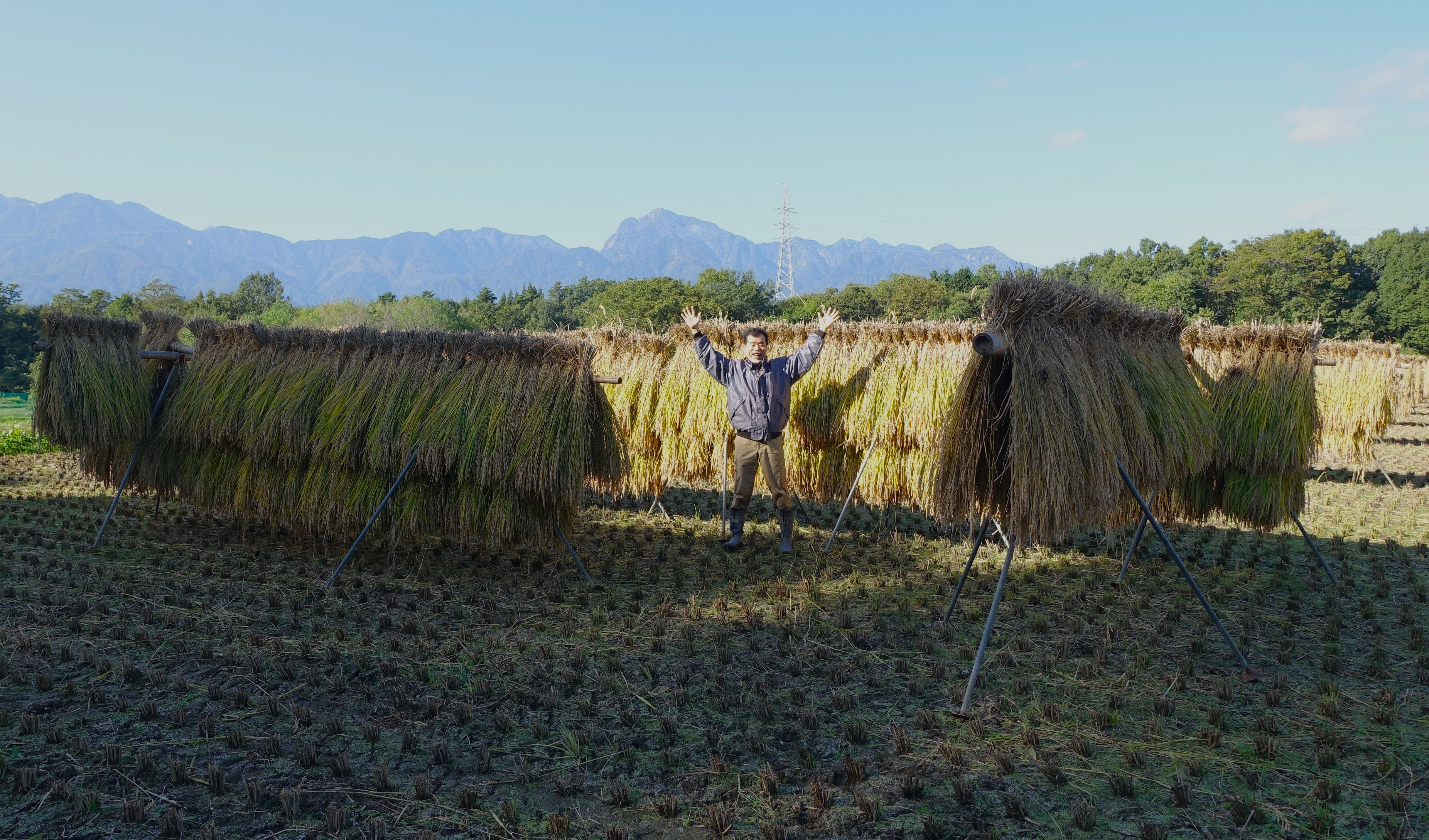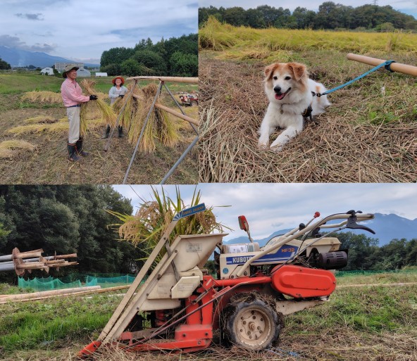 4割ぐらい多くなりました。稲の茎も太くはざかけするために拾い上げた束がしっかり重いです。